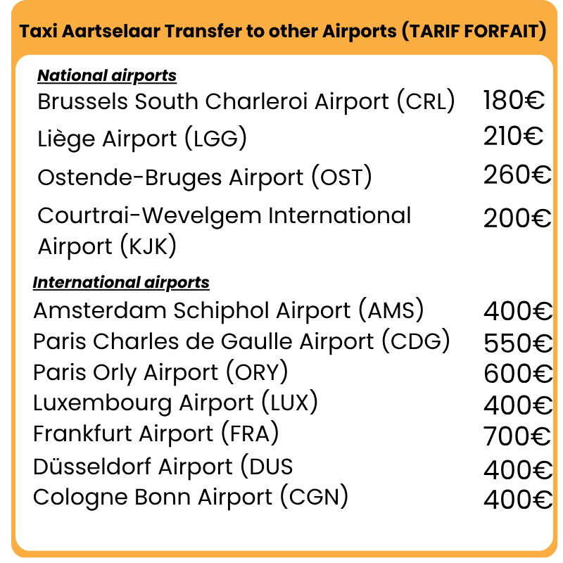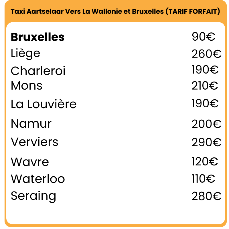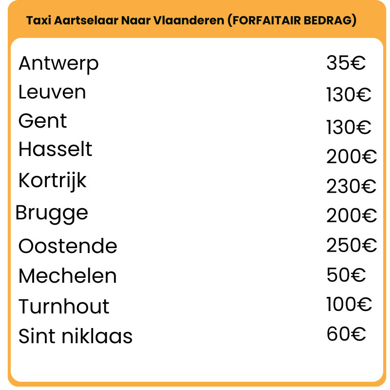 Onze forfaitaire tarieven zijn berekend vanaf het stadscentrum van de vermelde bestemming.